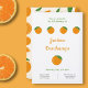 Um novo convite de aniversário com ilustrações laranja e textos personalizáveis! A parte de trás vem com uma fatia, metade e um padrão laranja de cheio. Você pode personalizar textos e usá-los para uma festa de inauguração de casa, um casamento, aposentadoria, festa de solteira etc.