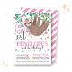 Celebre seu dia especial com nosso adorável convite de aniversário de preguiça rosa! Este encantador convite apresenta uma bela design de preguiça em uma bela sombra de rosa, perfeita para a festa de aniversário de uma garota.