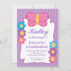 Convite de aniversário listrado roxo da borboleta