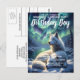 Menino de Aniversário! Convide amigos e familiares para a sua festa de aniversário com este simples Dois lobos brancos estão sentados graciosamente na neve brilhante sob uma deslumbrante aurora boreal, sua pelagem se misturando perfeitamente com a paisagem invernal.