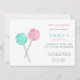 Convite de aniversário Adorável com duas lipops de cor d'água em tons e rosa. Perfeito para a festa do segundo aniversário