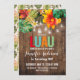 A design de festa de aniversário de Luau apresenta um fundo de madeira rústica, flores tropicais, abacaxi, luzes de jarro de pedras e correspondências atrás. Para acessar ferramentas avançadas de edição, vá para o link "Personalizar" e, em seguida, "clicar para personalizar mais".