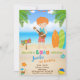 Convite de aniversário de Luau convite havaiano para o garoto. Bonito convite havaiano para o aniversário do garoto, apresentando ruiva com guitarra, surfs, praia e oceano azul, e alguns equipamentos tropicais. Basta editar este modelo fácil de usar no menu Personalização.
