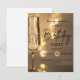 Torne sua celebração inesquecível com este Convite de Aniversário Luxuoso com Luzes Douradas, apresentando um elegante copo de champanhe e suaves luzes douradas bokeh para um toque moderno e sofisticado.