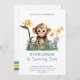 Faça do segundo aniversário do seu explorador um passeio selvagem com este Convite de aniversário de Dois Macacos Selvagens Selvagens! A design apresenta um adorável macaco bebê, verde tropical exuberante e flores amarelas e azuis alegres. Este design capta o entusiasmo de uma celebração temática da selva. As letras brancas e as vibrações safari definem a cena dos jogos de animais, salgadinhos inspirados na selva e memórias duradouras. Personalize-o com os detalhes do seu partido. Crie um olhar coeso com o Decor do Partido Safari Animal da mesma coleção. Prepare-se para um cheio de aniversário de diversão e aventura!