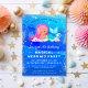 Este convite mágico da Sereia apresenta uma pequena Sereia fofa com conchas, bolhas e brilhos reluzentes contra uma diversão sob fundo do mar. Muito espaço para detalhes da festa. A parte de trás do convite tem design semelhante com o título "Junte-se a nós para uma festa mágica da Sereia!" Sua própria Sereia ficará entusiasmada com este adorável convite, perfeito para a Sereia ou festas Piscinas.
