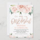rosa floral doce, doce, com o primeiro convite de aniversário com rosas cor-de-rosa, arranjos florais e algumas palavras falsas de caligrafia em rosa. Esta design bonito é uma forma engraçada de convidar convidados para suas meninas na primeira festa de aniversário.