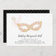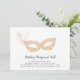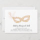 Convites elegantes de bola de mascarada para seu aniversário especial ou qualquer ocasião de festa apresentam uma máscara de ornamentado em cor-de-rosa e ouro, enfeitiçados com uma pena. Personalize com os detalhes do seu partido abaixo em um script de caligrafia negra e em letra de bloco.