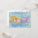 Bonito sereia, cercada por conchas, estrelas-do-mar e águas-vivas, convida convidados para a festa de aniversário de uma garota.