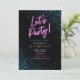 Personalize o texto editável e use o design para uma festa de janto divertida. Design apresenta brilho como luzes azuis e texto cor-de-rosa, em um fundo preto com brilho como detalhes. Design perfeito para muitas ocasiões!