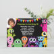 Esse convite de aniversário de monstros fofo é perfeito para uma festa de aniversário, ou a qualquer hora. Apresenta cinco monstros coloridos de desenho animado. Personalize este convite com sua foto e detalhes da festa. Faz um excelente da tua festa que podes guardar durante anos. Design Babystar