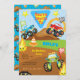 Aumente seus motores para uma emocionante festa de aniversário com este convite de festas do Monster Truck! Apresentando designs ousados e coloridos de caminhões gigantes e uma excitante tipografia, este convite é perfeito para qualquer celebração de aniversário de um jovem candidato a emoções. Personalize-o para criar um inesquecível começo a uma aventura de caminhão monstro de alta energia!