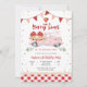 Celebre o primeiro aniversário do seu pequeno com este charmoso convite temático de morango! Com uma vintage caminhonete rosa cheia de cestas de morangos, balões festivos e flâmulas alegres, este design define o tom perfeito para uma celebração doce como um fruto silvestre. A borda xadrez e o fundo de confetes divertidos adicionam um toque de charme rústico, tornando-o ideal para festas de verão, encontros de jardim ou aniversários temáticos de morango. Personalize com os detalhes do seu evento e encante os convidados com um convite divertido e caprichoso tão doce quanto a ocasião.