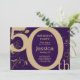 Ouro moderno e convite de aniversário roxo. O texto pode ser personalizado para aniversários, anos novos ou qualquer tipo de celebração.