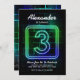 Menino terceiro convite de aniversário para Neon ou Glow na Festa de aniversário temática Escura