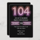 Números de néon cor-de-rosa brilhante sobre fundo preto para uma 104ª festa de aniversário Todo texto é editável. A cor preta do plano de fundo pode ser alterada.