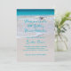 Convite de aniversário incrível de uma mulher adulta para celebrar no mar. O texto azul-aqua é impresso sobre areia da praia e água azul tropical. Personalize cada seção conforme necessário para suas necessidades. O reverso é azul sólido. Escolha um papel especial, como o mostrado, ou economize dinheiro baixando o tipo ou escolha a opção de download para compartilhar digitalmente.