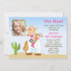 Equitação da vaqueira em um convite do aniversário do partido do cavalo. Este convite temático ocidental caracteriza uma menina loura que monta um cavalo que veste um chapéu de vaqueiro e umas botas de vaqueiro cor-de-rosa. Alguns elementos JDDigiDesign