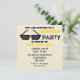 Um convite de aniversário com tema para o verão com uma ilustração de um par de óculos escuros no topo esquerdo. Personalize o texto amarelo e azul escuro com detalhes de sua ocasião.