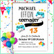 Está querendo adicionar um toque especial ao grande dia do seu filho adolescente? Olhe só este convite personalizado! Com os controladores de jogos elegantes e a opção de adicionar seu nome e sua idade, este convite certamente entusiasmará seus amigos.