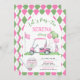 Convite de Aniversário Par Tee de Golfe Verde Rosa