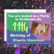 convite para uma festa de aniversário especial com nome e número de anos. Convite de festas para uma criança de 11 anos. Adicione a sua própria foto e redimensione-a. convites de festas de aniversários 11. Crédito Fotográfico: Fotografia © Storytree Studios, Stanford. CA.