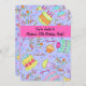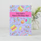 Este convite é excelente de uma celebração de festa de aniversário de adolescente, entre os 7 e os 14 anos. Todas as palavras são fáceis de personalizar. Um lado do convite tem uma design de arte original colorida de bolos e cupcakes aleatórios de aniversário, a palavra arte "feliz aniversário", balões, velas, galerias e pontos em um fundo roxo lavanda. Uma tira rosa-quente fuchsia tem as palavras personalizáveis "Você é convidado", um nome personalizado e "12 festa de aniversário" que são fáceis de mudar por mais um ano. O outro lado tem todos os campos para o seu partido. A borda é a mesma arte com uma área de lavanda luminosa rosa-quente esboçada para todas as informações. Fácil de personalizar para criar seu próprio convite para outros eventos.