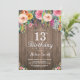 Convite de Aniversário para 13 Floral Russo para Mulheres. Flor Floral De Aquarela, Fundo De Madeira Rústica. Vintage Retro. Aniversário de criança. Mulher Menina Adolescente Adolescente Bday Bash Convidam. 13 15 de 16º 18º 20 21rua 30 de 40º 50º 80 de 60º 70 de 100º. Qualquer Idade. Para mais personalização, clique no botão "Personalizar" e use nossa ferramenta de design para modificar este modelo.