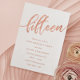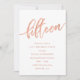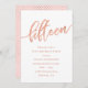Convites de festas de aniversários 15 de rosa Dourado rosa: convite de aniversário 15 Bonito de ouro design com folha de ouro rosa brilhante "15" escrito em tipografia de escrita manuscrita. A inscrição temporária preenche os detalhes da festa. [Note que, embora os elementos deste design possam ser impressões para se parecerem com folhas, não é utilizada nenhuma folha ou tinta metálica para criar os convites - a folha de ouro rosa é um efeito impresso.]