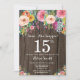 Rustic Floral Surprise 15 Convite de Aniversário para Rapariga. Flor Floral de Aquarela. Campo De Vintagem Da Madeira Rústica. Rosa, Amarelo, Laranja, Flor Roxo. Aniversário Adulto. 13 15 16º 18º 20 21rua 30 40º 50º 60º 80 de 70 100º, qualquer idade. Para mais personalização, clique no botão "Personalizar" e use nossa ferramenta de design para modificar este modelo.