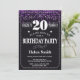 Convite de Aniversário para 20 de Glitter Roxo. Tipografia Branca. Fundo do quadro negro e branco. Aniversário Adulto. Homens ou Mulheres Aniversário. Menino ou Menina Menina Menina Adolescente Convidam. 13 15 de 16º 18º 20 21rua 30 de 40º 50º 80 de 60º 70 de 100º. Qualquer Idade. Para mais personalização, clique no botão "Personalizar" e use nossa ferramenta de design para modificar este modelo.