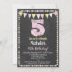 Um convite de aniversário de 5 cor-de-rosa e amarelo, com texto de giz entupido no topo, com fundo de chalkboard, bandeiras e uma bela borda poka-dot.