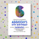 Este design de aniversário te levará ao entalhe. Grooves. Que seja. Apresentando tipografia ousada e retrô em um estilo cromático colorido, este design é o caminho mais simples para uma festa. O esquema de cores do arco-íris dá um sabor divertido, peculiar, ao design e o cromo traz a dinâmica da pista de dança da discoteca. Perfeito para seu gênio-Xer favorito ou adolescente sofisticado, qualquer um celebrando um aniversário de marco. Vejam a coleção hoje para coordenar peças para jogar facilmente uma cesta totalmente tubular.