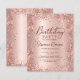 Convites de festas de aniversários rosa de ouro elegante e moderno, metálicos e 70 brilhante. Este design de placa girly adulta apresenta um roteiro de caligrafia manuscrito na moda, cor-de-rosa-pincel ou rosa dourado, fundo metálico escovado com fusível brilho. Fácil de personalizar, perfeito para qualquer idade.