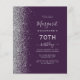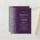 A borda esquerda deste elegante convite de aniversário moderno apresenta um design cintilante prateado. O texto personalizável combina a escrita manual de cinzas prateadas, fontes copperplate e itálico em um fundo roxo escuro. O verso apresenta um design de brilho roxo e prateado correspondente.