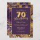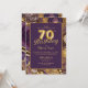 Convite de aniversário de gema de ouro roxo e elegante. O convite de 70 apresenta ouro cômico e design do estilo gemstone de mármore roxo e os números 70 estão no estilo de balão tipo folha de ouro.