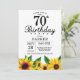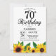 Convite de aniversário para 70 de girassol. Flores Florais e Fundo Branco. Retro de Vintagem do País. Mulheres Aniversário. 15 de 12 de 16º 20 de 18º de 13 21rua 30 de 40º de 50º de 60º de 70 90 de 100º de qualquer idade. Digital Imprimível. Para mais personalização, clique no botão "Personalizar" e use nossa ferramenta de design para modificar este modelo.