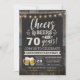 Surpreenda Cheers and Beers 70 Birthday Invitation com conselho de giz e inscrição em idade personalizável.