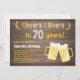 Convite de Aniversário para 70 de Festas e Cervejas. Aniversário Adulto. Aniversário de cerveja para homens. Fundo Da Madeira Rústica. Retro De Vintagem Do País.