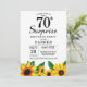 Convite de Aniversário para 70 de Surpresa de Girassol Flores Florais e Fundo Branco. Retro de Vintagem do País. Mulheres Aniversário. 15 de 12 de 16º 20 de 18º de 13 21rua 30 de 40º de 50º de 60º de 70 90 de 100º de qualquer idade. Digital Imprimível. Para mais personalização, clique no botão "Personalizar" e use nossa ferramenta de design para modificar este modelo.