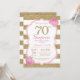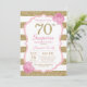 Convite de Aniversário do 70 Surpresa Rosa e Dourado. Rosa e Dourado brilho. Listras brancas e rosa. Flor Floral Rosa. Aniversário Adulto. Festa de aniversário feminina.