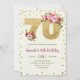Placa de Convite Floral e Dourada para Largura Rosa para Festa de aniversário 70 com Números de Largura