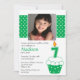 Comece a festa com o nosso cupcake verde, com uma vela de sete anos, chamada de aniversário Photo Birthday. Tão fofo e perfeito para a sétima festa de aniversário da sua filha ou do seu filho. Apenas personalize com suas informações e fotos e você está pronto para ir! Itens correspondentes, incluindo selos de postagem de aniversário, adesivos de favoritos, cartões de agradecimento e obrigado que você também está disponível em nosso compro. ©Goodness & Fun