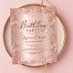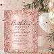 Convites de festas de aniversários rosa de ouro elegante e moderno, metálicos e 80 brilhante. Este design de placa girly adulta apresenta um roteiro de caligrafia manuscrito na moda, cor-de-rosa-pincel ou rosa dourado, fundo metálico escovado com fusível brilho. Fácil de personalizar, perfeito para qualquer idade.