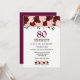 Flores de Borgonha e Rosa, 80 de Aniversário Convidam Coleção de Cores Flóridas Rosa e Borgonha, Florais de Casamento de Vinhos e Blush Rosa, Flores de Cintas Aquáticas Pintadas à Mão, Pintadas à Maneira, Pintados A Rosa Mole e Merlot