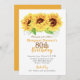 Convite de aniversário de 80 floral de girassol amarelo. Este convite de aniversário para adultos de girassol com cor de água é uma boa escolha para um aniversário de verão ou um aniversário de outono/outono. Este convite de 80 de aniversário de girassol amarelo apresenta lindos girassóis amarelos de cor aquática com folhas verdes. Este convite de aniversário de chic, rústico ou de girassol tem um aspecto de país excelente, então é perfeito para uma festa de aniversário de estilo country. Também pode ser usado para qualquer outro ano de aniversário de etapa (90, 75, 60, 100, etc.).