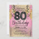 Convite de Aniversário para 80 de Glitter Rosa e D