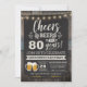 Surpreenda Cheers and Beers 80 Birthday Invitation com conselho de giz e inscrição em idade personalizável.