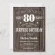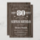 Convite de Aniversário para 80 de Surpresa. Tipografia Branca. Fundo Da Madeira Rústica. Aniversário Adulto. Homens ou Mulheres Aniversário. Meninos Meninos ou Meninas Meninas Meninas Adolescentes Convidam. 13 15 16º 18º 20 21rua 30 40º 50º 60º 80 de 70 100º. Qualquer Idade.