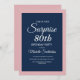 Convite de aniversário de 80 surpresa, rosa e azul-marinho moderno, personalizado com o nome do convidado de honra e sua informação de partido. As cores desta placa são totalmente personalizáveis quando você usa as ferramentas do design Zazzle.